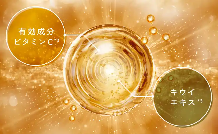 キウイエキスの恵みが、肌のすみずみ*⁴までビタミンC*³を届けます。 |