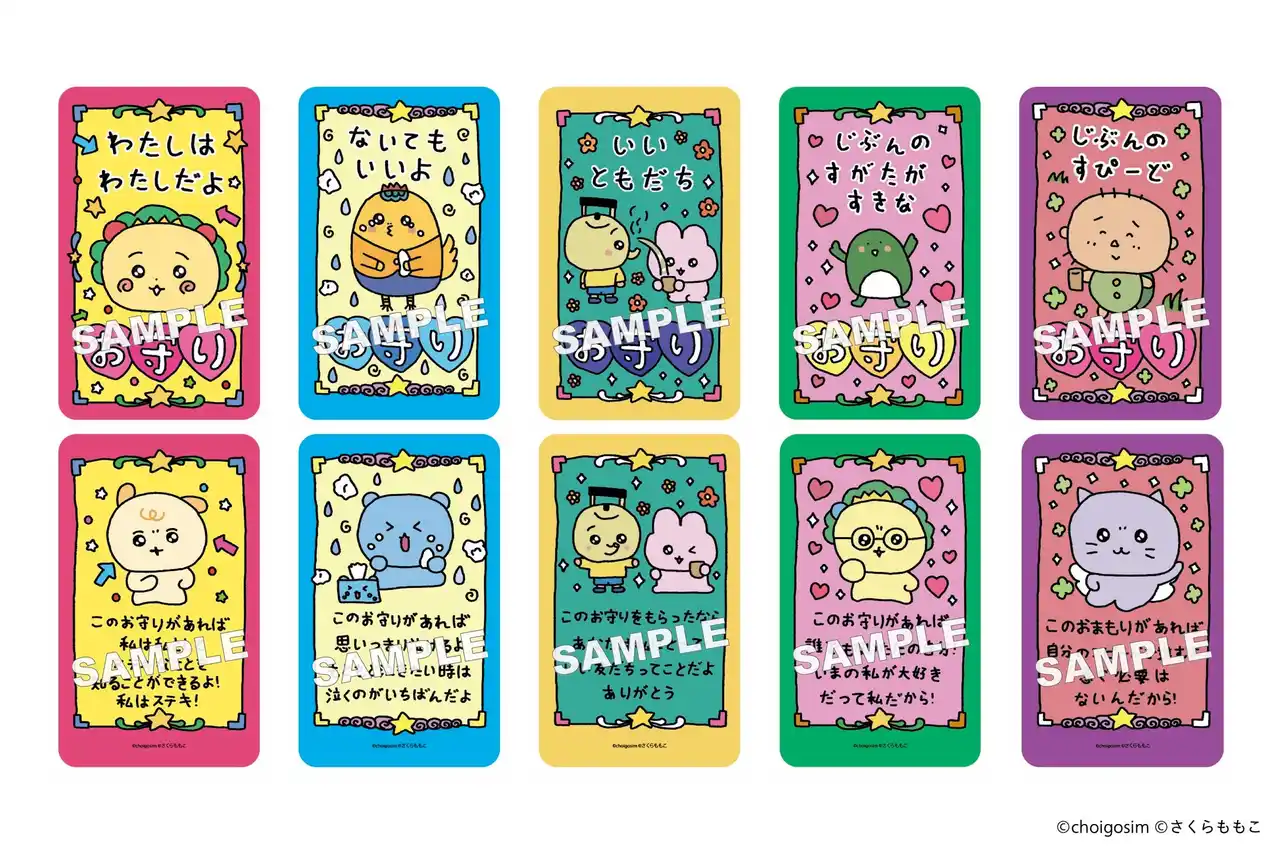「チェゴシム」の定番人気商品・お守りカードがコラボ特別バージョンで登場。表面には「コジコジ」、裏面には「あかちゃんゴシム」が描かれた「わたしはわたしだよお守り」や、お茶を沸かした「やかん君」とそのお茶を飲む「うさゴシム」が並んだ「いいともだちお守り」など、全5種類を販売します。 |