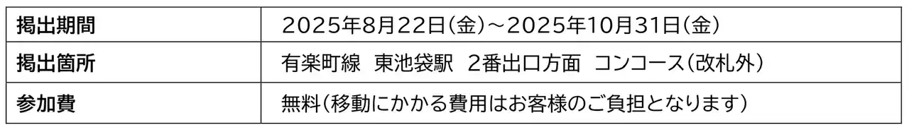 | 2025年8月29日(金)~2025年10月31日(金) | ||||||||||||||