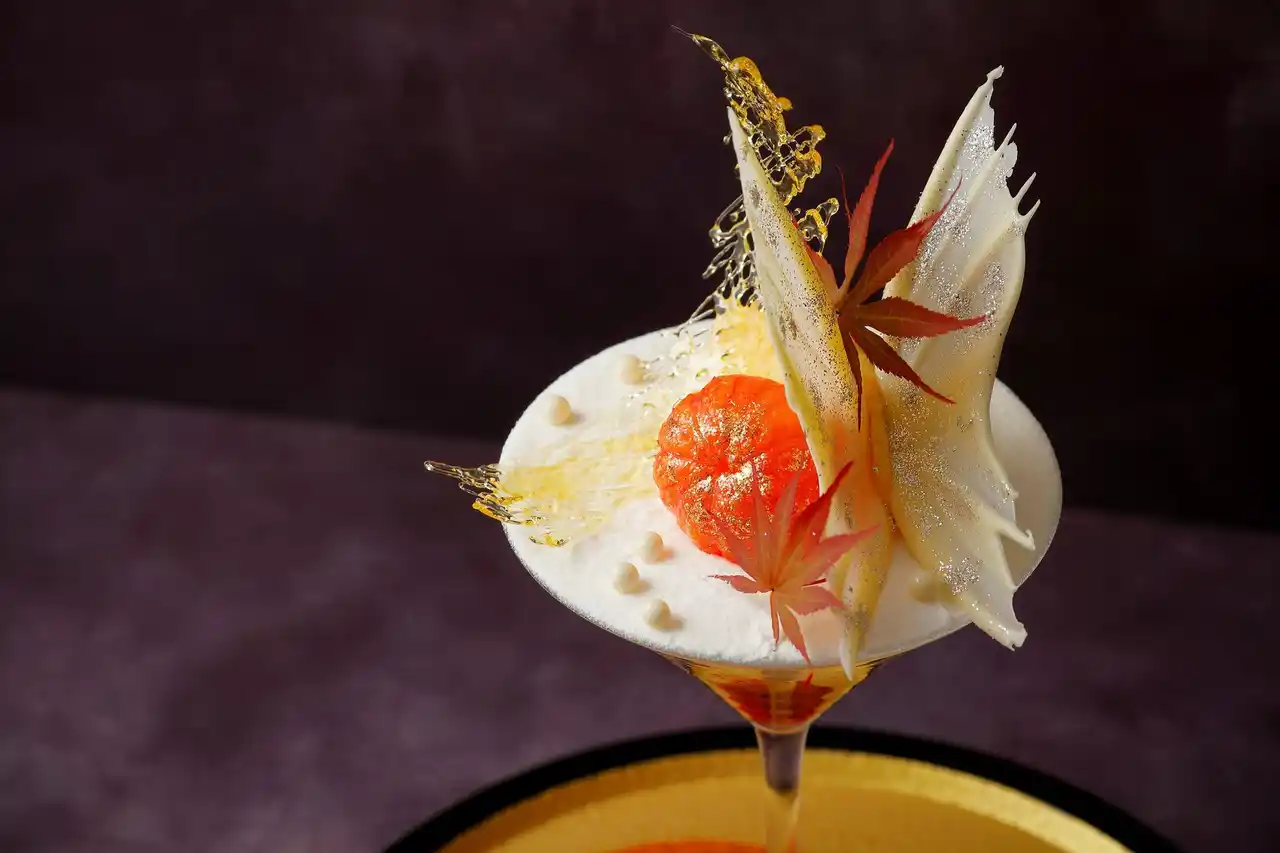 生産量日本一を誇る和歌山県産のみかんと旬のさつまいもをメインに、秋の実りを贅沢に詰め込んだパフェ。みかんのコンポートをはじめ、さつまいもを合わせた軽やかなエスプーマやスイートポテトなどみかんの香りと風味を口いっぱいに感じられます。秋ならではの深い甘さとみかんの清々しさを表現したパフェは、夜の〆パフェとしてもお楽しみいただけます。 |