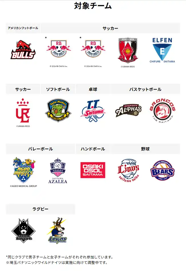 ※埼玉パナソニックワイルドナイツは実施に向けて調整中です。 |