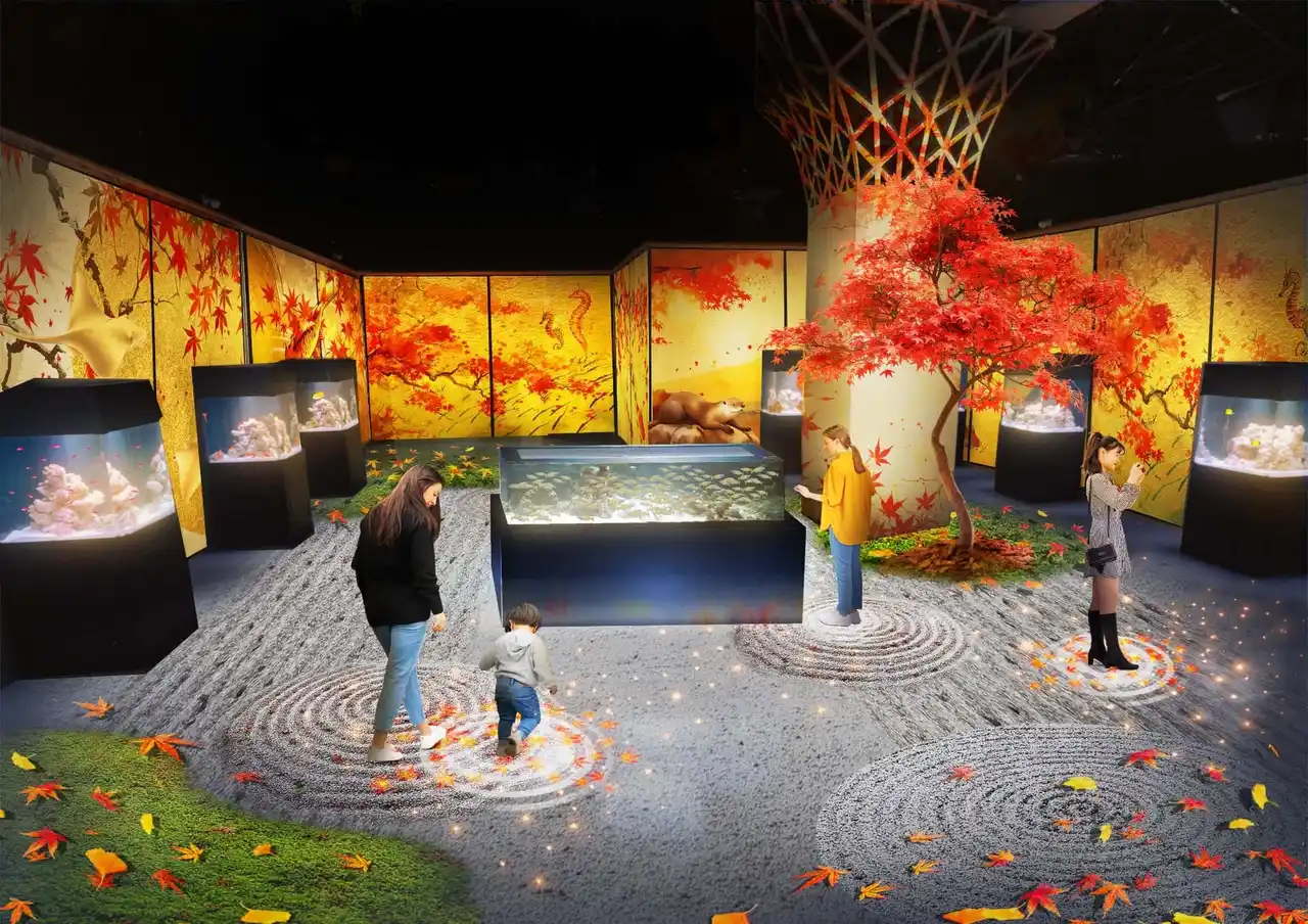テーマは、“から紅に染まる、海の世界で紅葉狩り”。光と映像、そして生きものが織りなす演出を通して、日本の秋の風情を海の中で感じられる、これまでにない体験をお届けします。 |