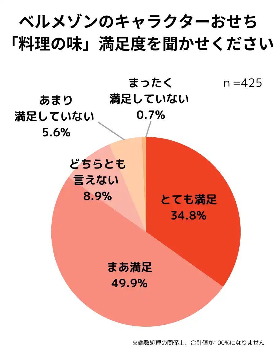 ベルメゾンが取り扱うキャラクターおせちは、宅配便で自宅まで届き、家庭の冷蔵庫に置いておくだけで解凍できる「冷凍おせち」です。好きなタイミングで解凍でき、保存期間が長く、手軽に食べることができます。また、急速冷凍技術を取り入れていることで、風味や鮮度を保ったままおいしく食べることができます。2025年度ベルメゾンでキャラクターおせちを購入いただいたお客様のアンケート結果※では、84.7%の方に料理の味に満足と回答いただきました。 |