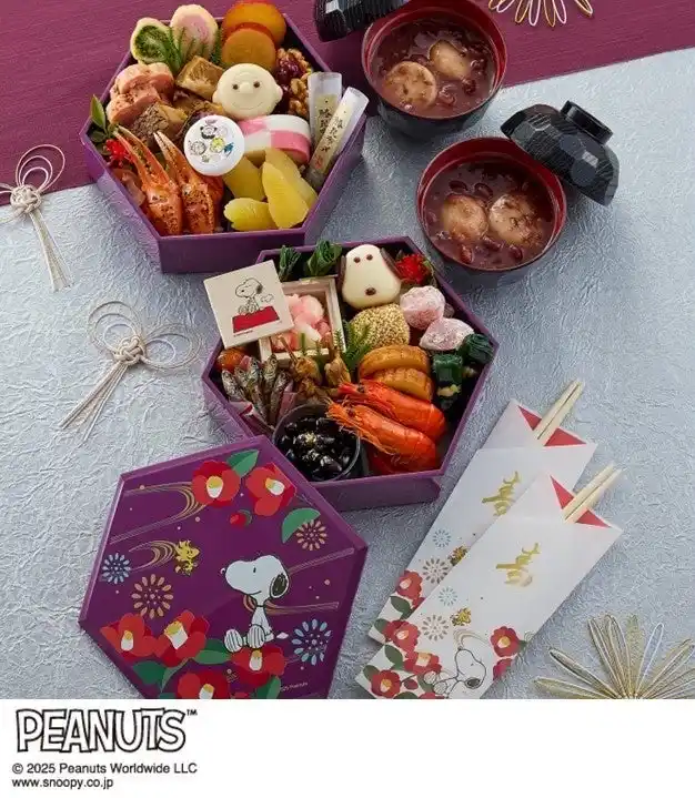 スヌーピーと和柄の組み合わせがシックな大人向けの豪華おせち |