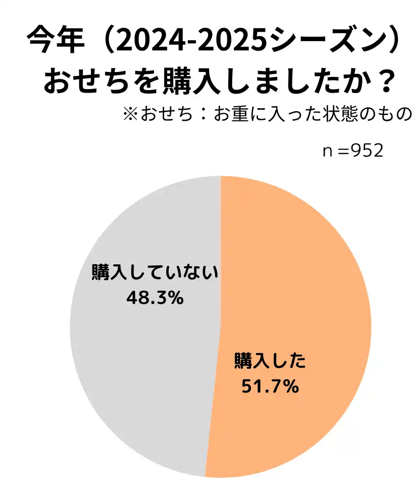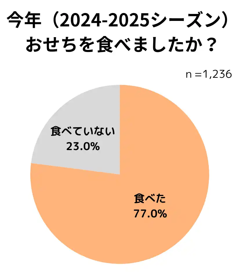 ・2025年度、おせちを食べたと回答した人は全体の77%を占め、そのうち「購入した」人は51.7% |