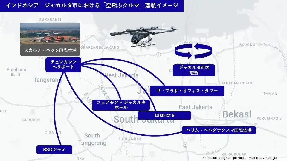 インドネシアでは首都ジャカルタをはじめ、都市部で深刻な渋滞が課題となっており、空飛ぶクルマがその解決策として強く期待されています。Whitesky社は、長年の安全な運航実績を元に、スカルノハッタ国際空港隣接のヘリポートで唯一ヘリタクシーの許可を取得し、既に実運航を通じて課題解決に取り組み始めており、我々にとって最良のパートナーであると確信しています。 |