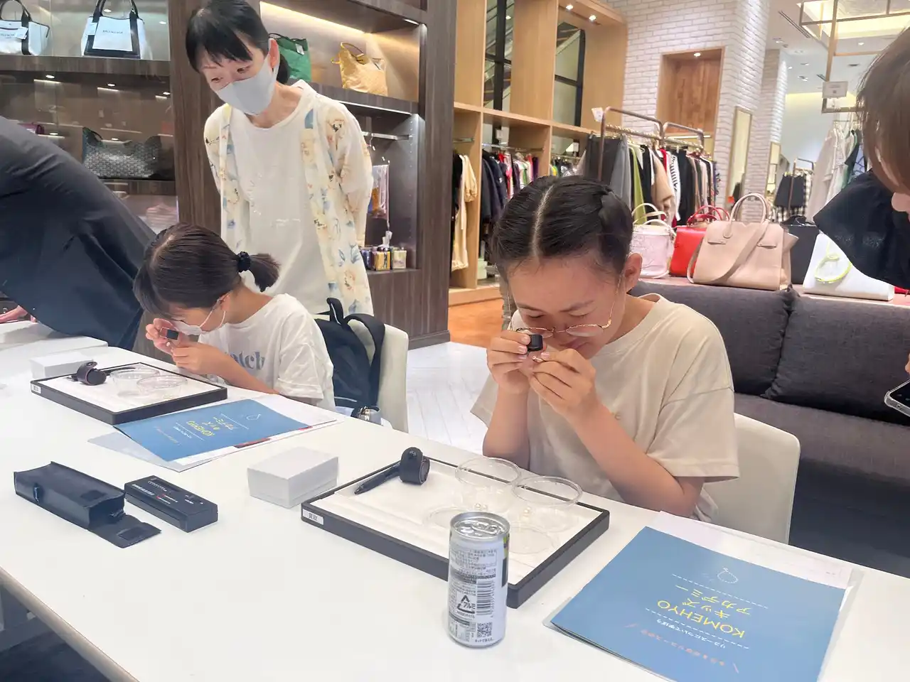 | 価値を見極める「鑑定士」のお仕事紹介やルーペを使用したダイヤモンド・パールの鑑定体験を行いました。 | |||||||||