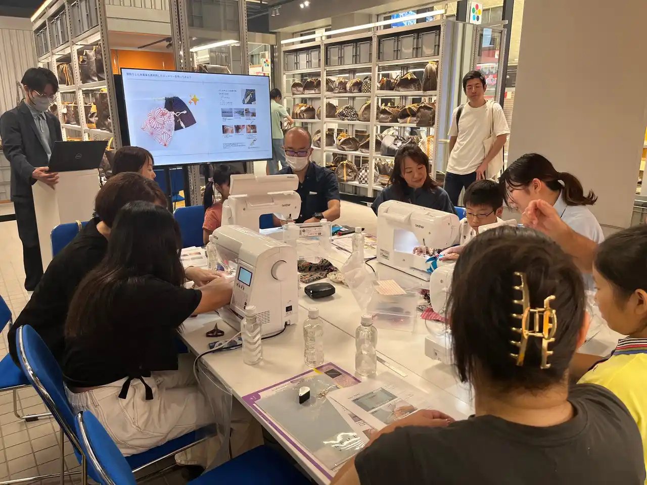 | KOMEHYOで買取した着物のはぎれを使用し、ミシンを使って巾着を作成する体験を行いました。 | |||||||||