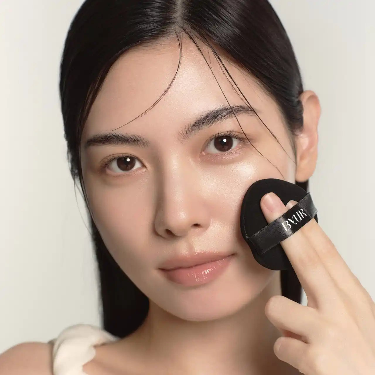 顔全体にポンポンとたたくようになじませると、ファンデーションがみるみる均一にフィットし、筋ムラも防止。洗って何度もお使いいただける、サステナブルなツールです。 |