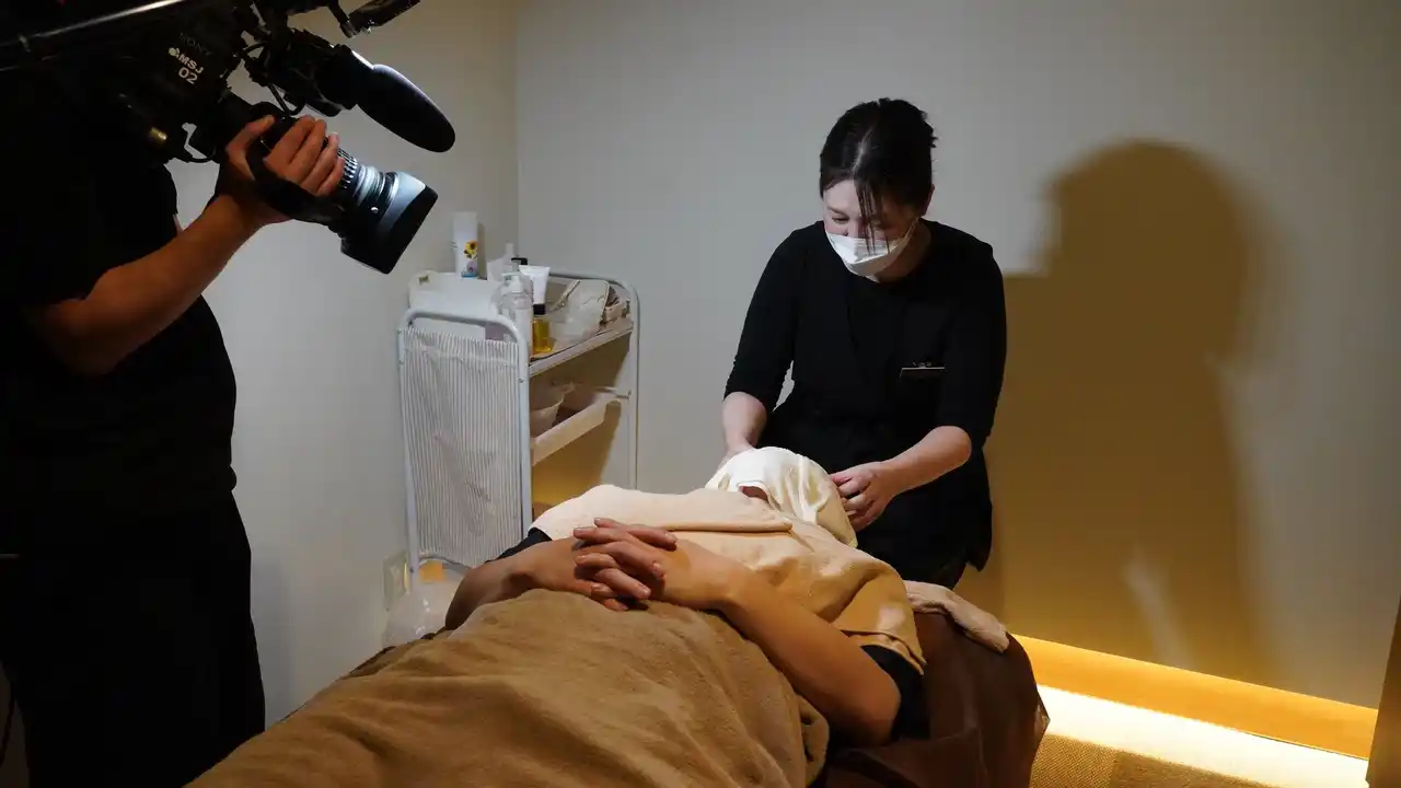 シモタさんはフェイシャルエステ、前田さんは足ツボと、それぞれ初めての施術体験に挑戦することに…! |