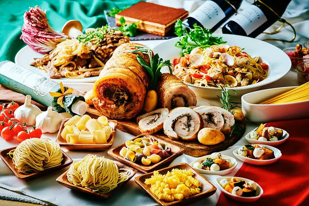 | 約60種類の料理が楽しめるイタリアフェアブッフェを開催。ハーブを巻き込んだイタリアの伝統的なローストポーク「ポルケッタ」や、牛のレバーと玉ねぎの煮込み「フェガト・アッラ・ベネツィアーナ」、「ボンゴレ・ビアンコ」などのイタリア料理が一堂に集い、デザートには「ティラミス」も登場します。 | |||||