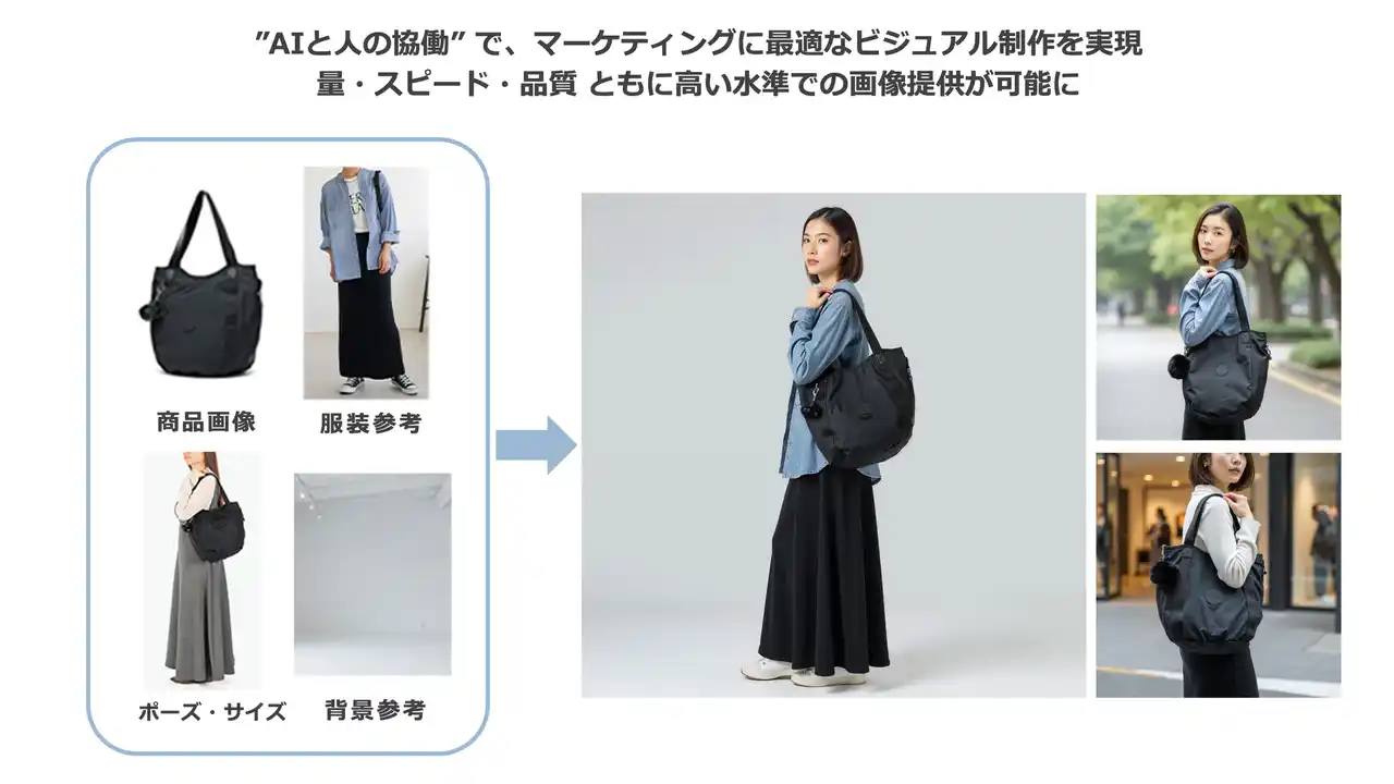 | AIの生成技術とデザイナーの表現力・監修を組み合わせることで、ブランドの世界観を損なわずに高品質なビジュアル制作を短時間で実現するソリューションです。 | |||