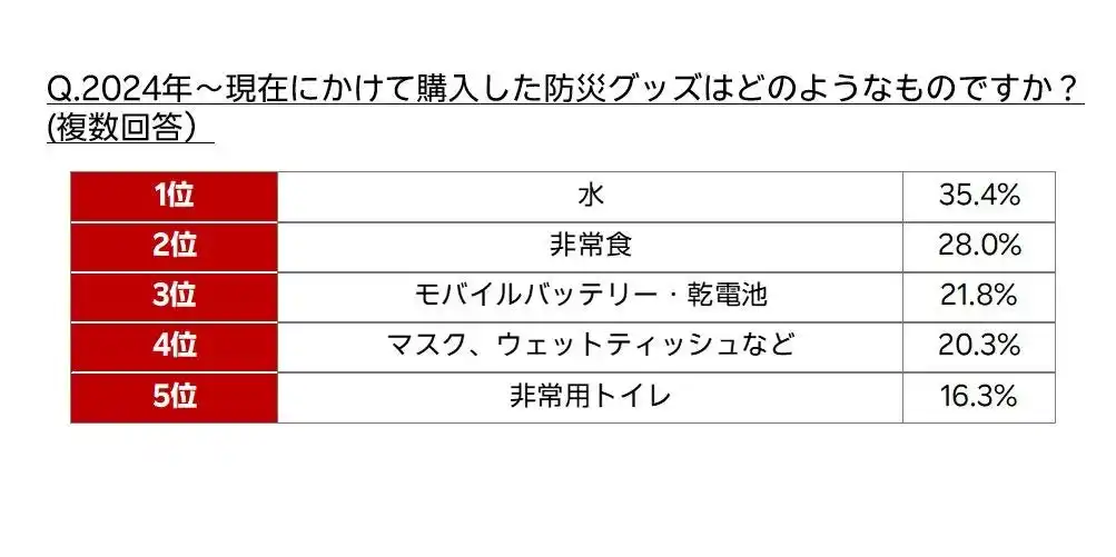 | ■2024年以降の人気防災グッズ上位は「水」「非常食」「モバイルバッテリー」 | |||
