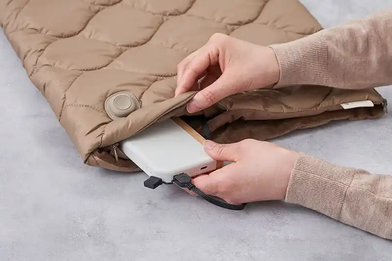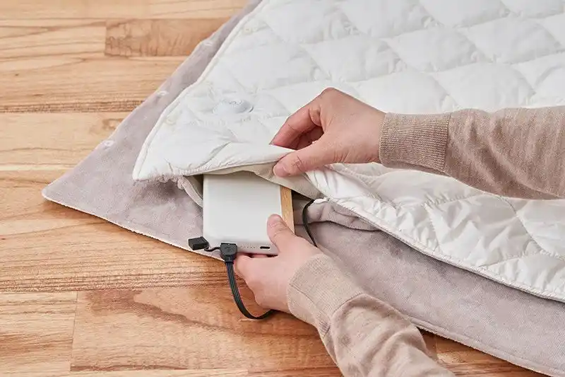アウトドアでも大活躍のヒーター内蔵ブランケット。 |