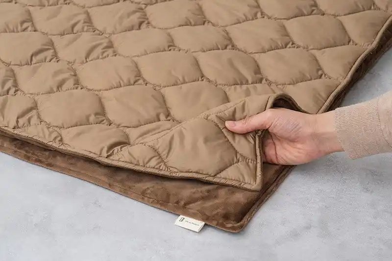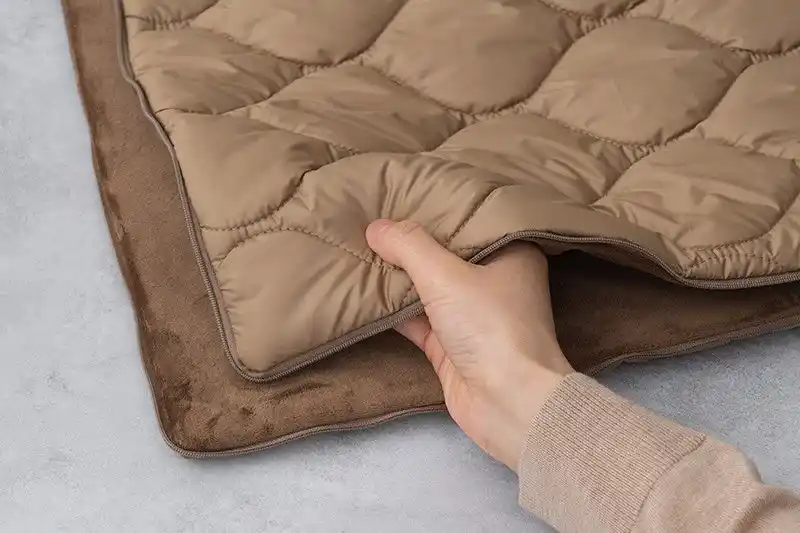 ヒーター入りのキルト素材は、ファスナー開閉で |