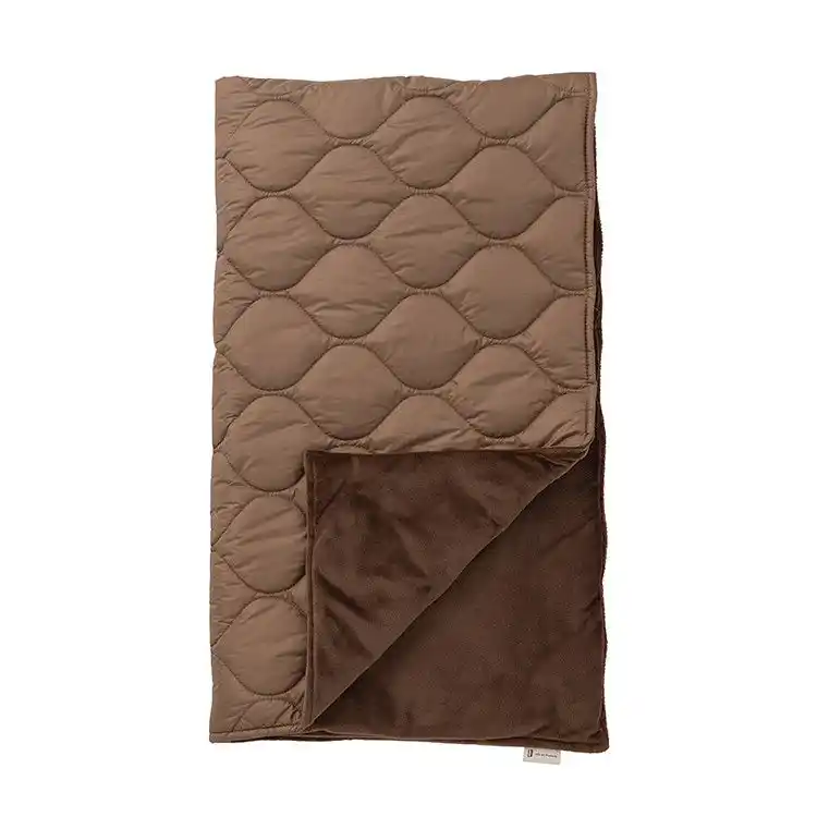ふんわり軽いキルト素材で、ファスナーを開くとミニブランケットの2WAYに。 |