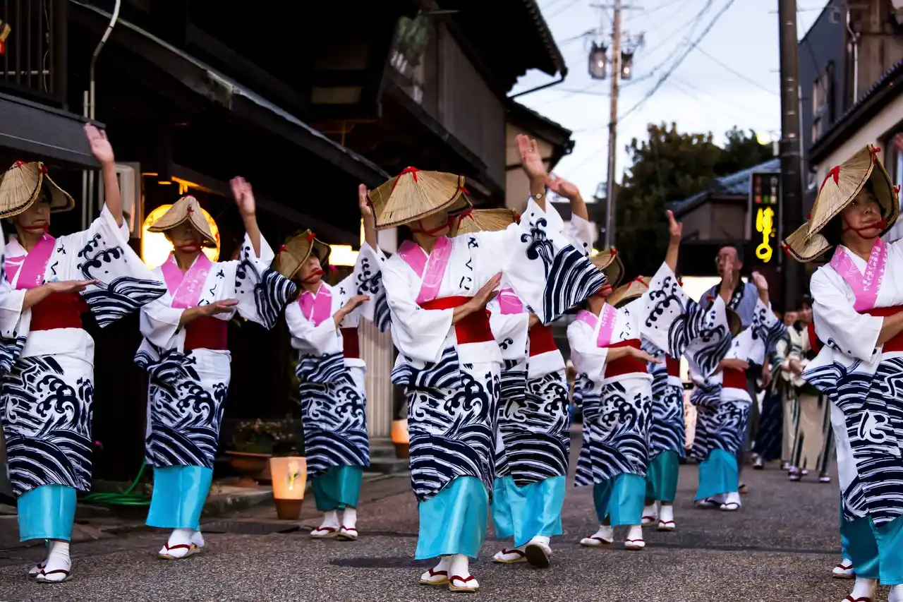 コアグローバルマネジメント株式会社(本社:東京都中央区、代表取締役:中野 正純、以下「当社」)が運営する、分散型宿泊施設「オーベルジュほまち 三國湊」は、2025年10月4日(土)に開催される三国町の伝統行事「三國湊 帯のまち流し」の時期に合わせて、2泊以上滞在されるお客様に趣の異なる客室に泊まれる連泊プランをご提供します(通年利用可能)。町家を背景に夕暮れどきから始まり、薄灯りのともるなか、揃いの着物姿に身を包んだ踊り手たちが、三国節といわれる唄に三味線と笛の音を合わせ三国の町を踊り流します。観光客も多く訪れる伝統行事です。 |