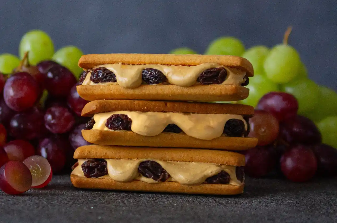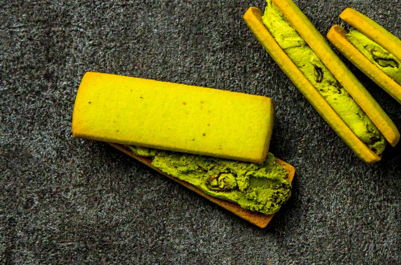 | 「トロバタ レーズン&抹茶」は、宇治抹茶と国産発酵バター香るクッキーでジューシーなラム漬けレーズンを入れた宇治抹茶香るクリームをサンドしています。 | |||