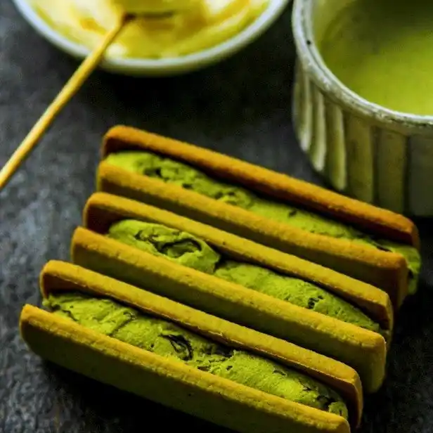 | クッキー、クリームに宇治抹茶を配合。香りがよく、苦味がクリームの味わいを引き締めます。 | |||