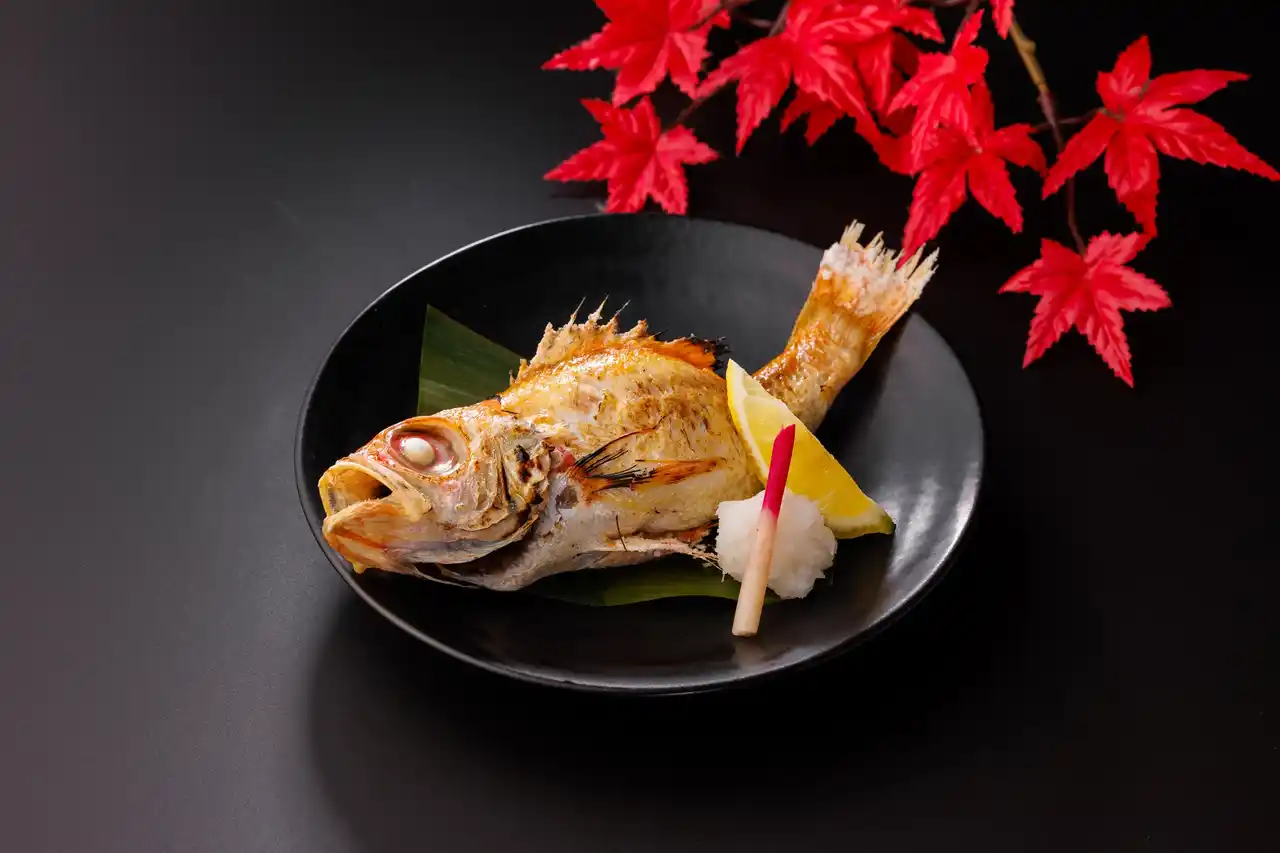 秋の産卵前にたくさんのエサを食べたのどぐろは、脂肪分を蓄えており、1年で最も脂がのり特に美味しい時期となります。のどぐろは正式名称「アカムツ」と呼ばれ、その名の通り赤いルビーのような色合いと、大きな目玉が特徴の高級魚です。 |