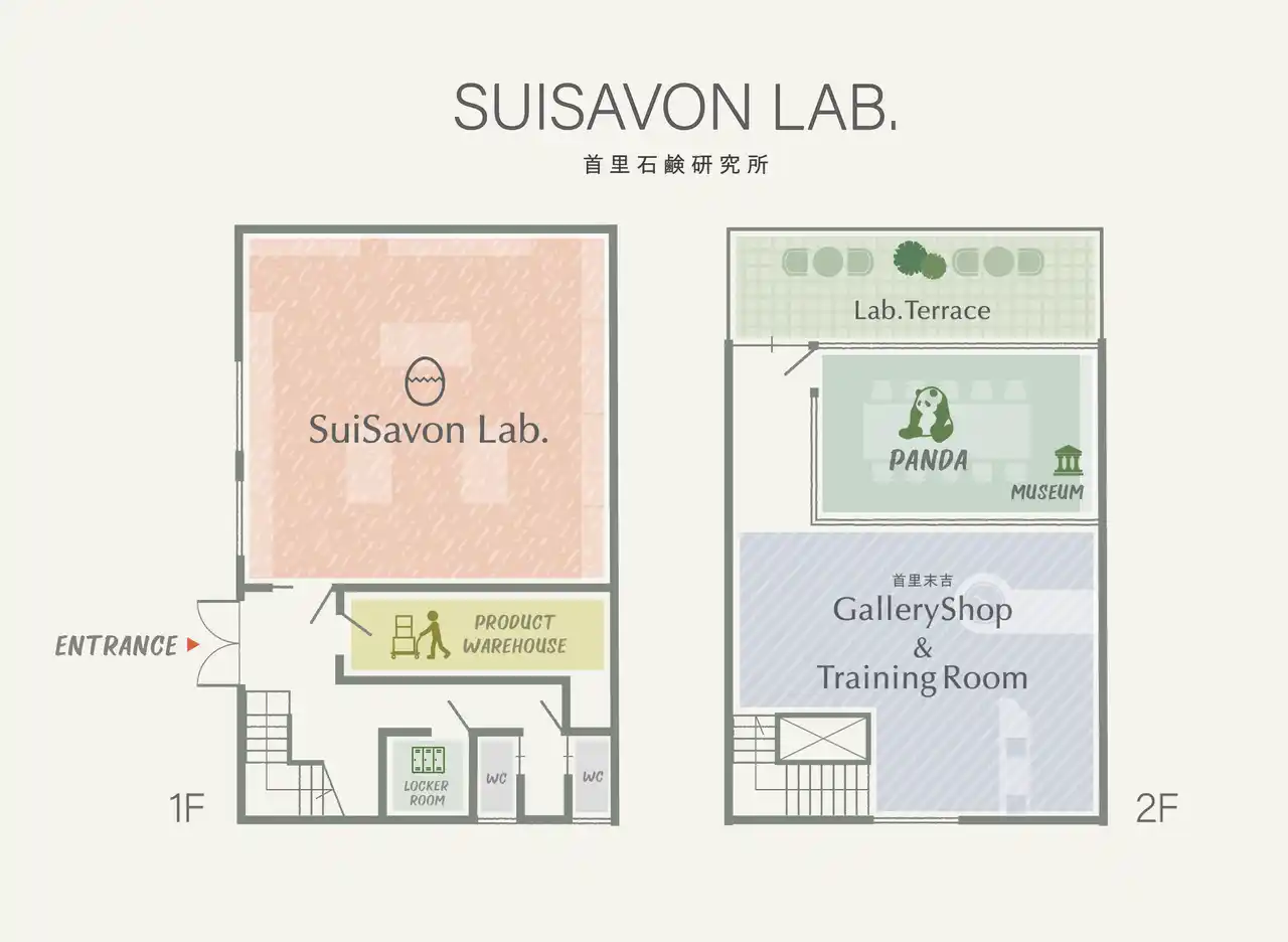 沖縄発スキンケアブランド SuiSavon-首里石鹸- を展開する株式会社首里石鹸(沖縄県那覇市首里末吉町、代表取締役社長 緒方教介)は、ブランド事業を中核とする事業体制への再構築に伴い、ブランドのさらなる強化と持続的成長に向けて、新事務所内に石鹸工房(首里石鹸研究所 SuiSavon Lab.)を併設、本社オフィスの全面リニューアルを実施いたしました。加えて、新事務所の2Fには模擬店舗を作り、実践的な教育と育成ができる環境を整え、新たな人材開発拠点も創出しました。 |
