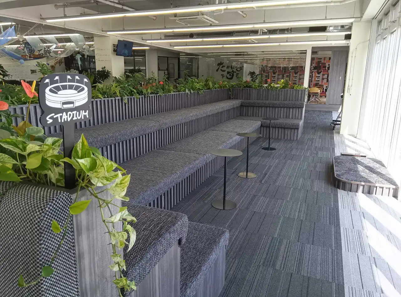 更に、この機会に全社員がブランド事業に向けて一丸となるために、「対話と教育」をテーマとして実施した本社リニューアルでは、「ムダを愛する」精神で、立ち話や何気ない会話からお客様感動が生まれること、同時に採用強化につながることを願っています。特に末吉公園の緑を望むベンチシート「スタジアム」がオススメです。お近くにお越しの際はぜひ見学いただけたら幸いです。 |