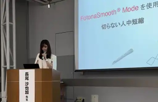 2025年8月16日(土) に大阪国際会議場で開催された「第43回 日本美容皮膚科学会 Fotonaハンズオンセミナー」において、THE ROPPONGI CLINIC 長尾沙也加が登壇し、「安全で患者様満足度の高い治療のために知っておきたいこと」をテーマに、世界的にも注目を集める「レーザーを用いた人気治療 ミラジェットフォルテ・人中短縮」について講演および実演を行いました。