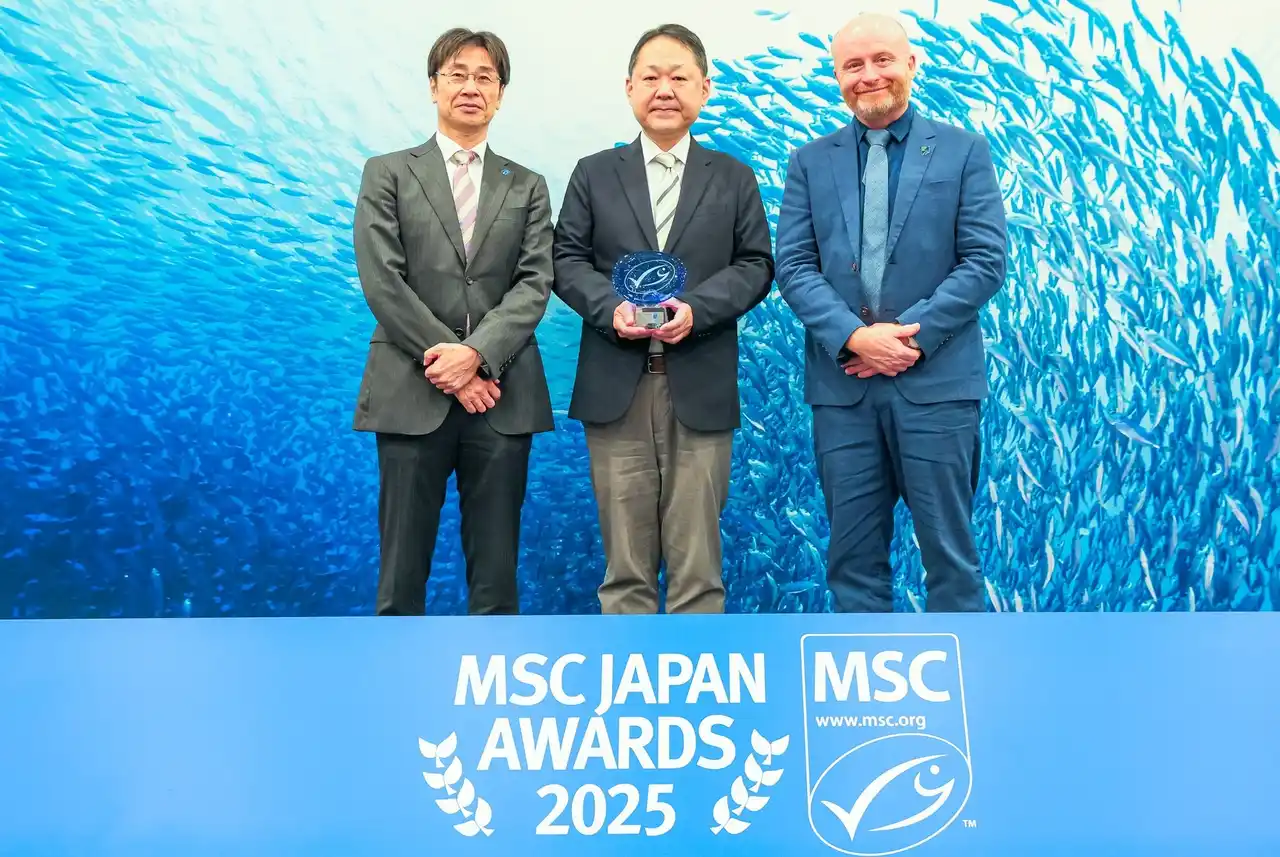 「MSCジャパン・アワード」は、持続可能な漁業を認証する制度の運営機関であるMSC(Marine Stewardship Council/本部 ロンドン)の日本事務所MSCジャパンが主催する昨年から開催されたアワードです。この度イオンは、昨年に続き、2024年度MSC「海のエコラベル」付き消費者向け製品の販売重量※3)の大きかった小売企業として「MSCジャパン・アワード 2025」の小売部門を受賞しました。 |