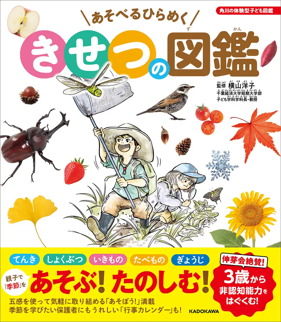 株式会社KADOKAWA(本社:東京都千代田区、取締役 代表執行役社長 CEO:夏野剛)は、2025年7月24日(木)に発売した『角川の体験型子ども図鑑 あそべるひらめく きせつの図鑑』の監修者である横山洋子先生と、伸芽会教育研究所の麻生尚子先生とのスペシャル対談を、KADOKAWA児童書ポータルサイト「ヨメルバ」にて2025年8月22日(金)より公開しました。 |