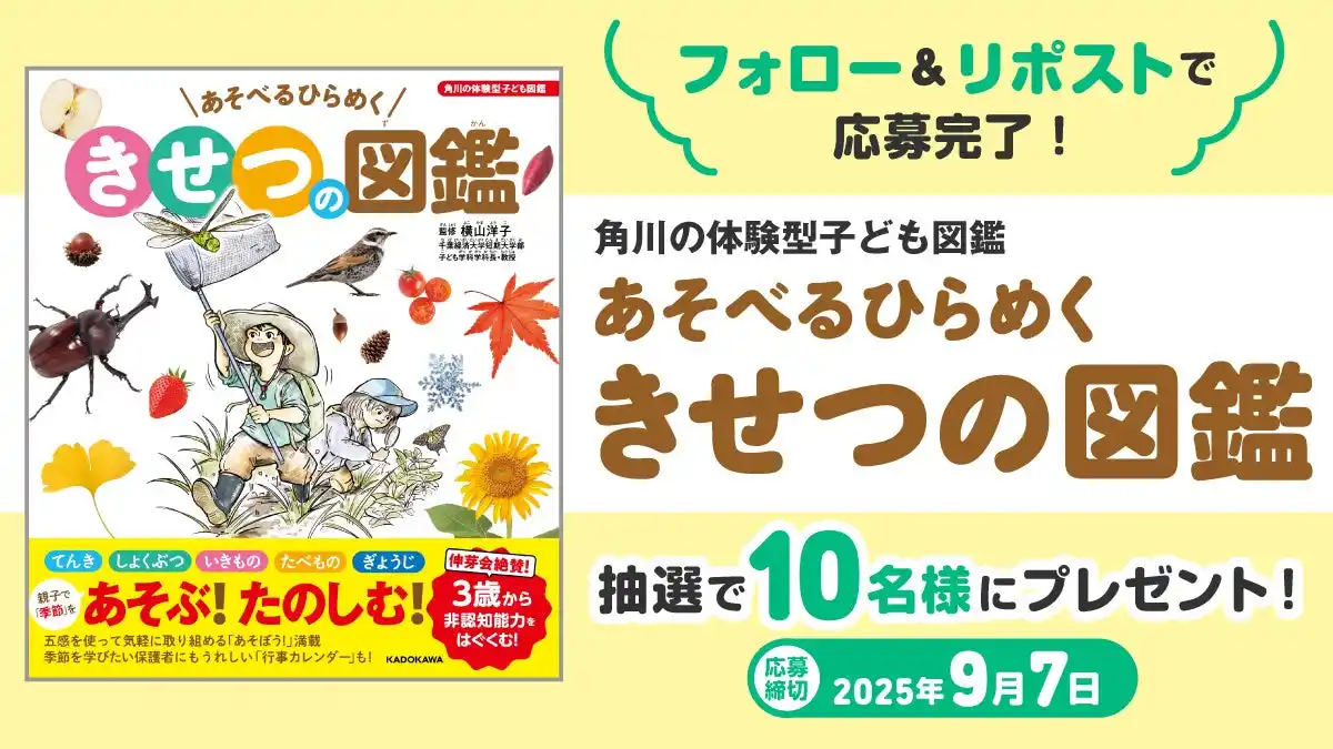 Xで「角川の集める図鑑GET!【公式】」(@ZUKAN_GET)アカウントをフォロー&リポストしていただくと、抽選で10名様に『あそべるひらめく きせつの図鑑』をプレゼントいたします。 応募締切は2025年9月7日(日)23:59まで。応募詳細は下記の投稿をご覧ください。 |