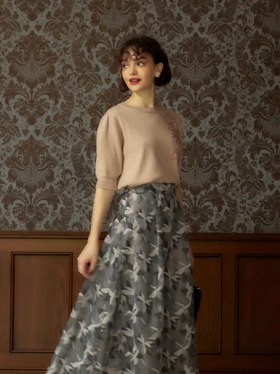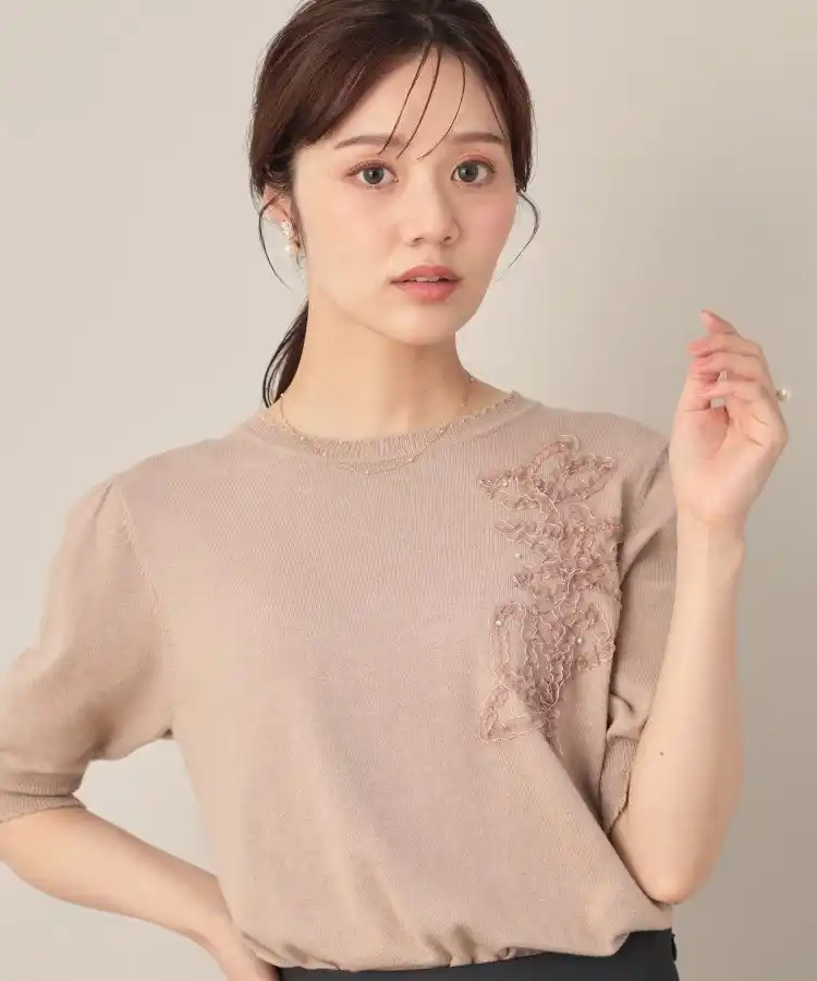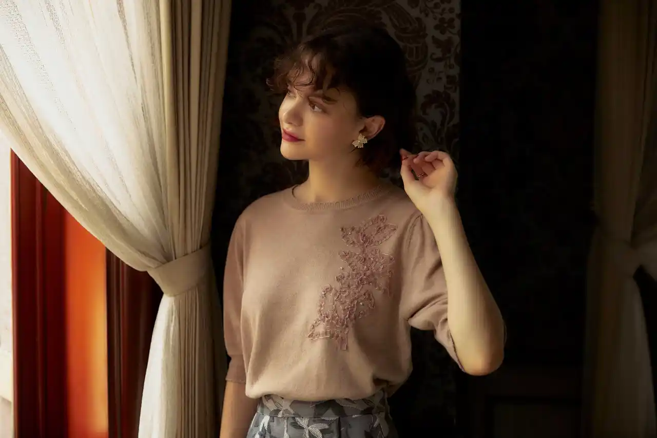 | 今初秋のクチュールブローチはオーガンジー素材のリボンで作られた花柄の刺繍が特徴のニットトップスや、リンドウの花の刺繍が映える存在感のあるフレアスカート、ふわりと広がるシフォン生地が魅力の大人可愛いワンピースなど、秋のムードが漂うアイテムをバリエーション豊かに展開いたします。 | ||||||||||