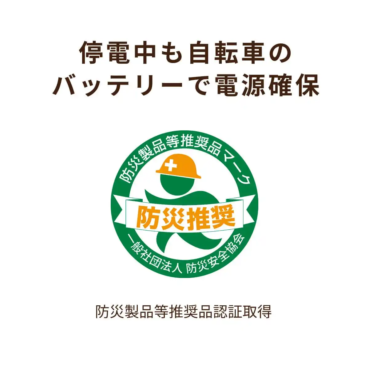 「チャリパワー」は防災推奨認定マークを取得。 |