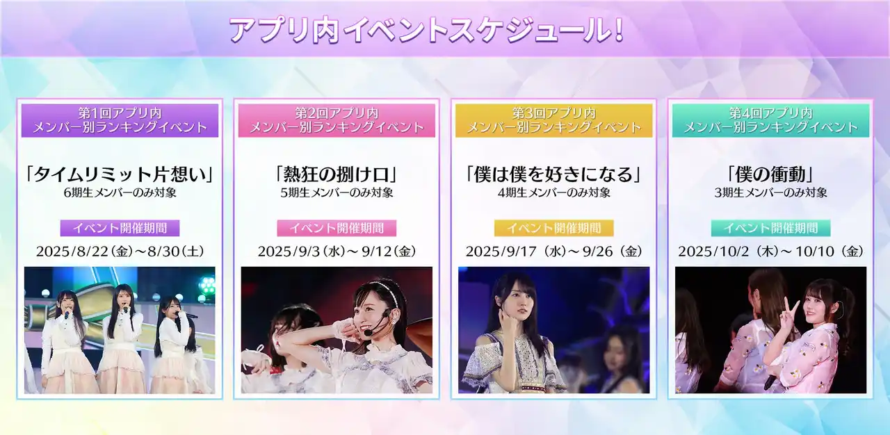 そして8月下旬~10月中旬にかけて、アプリ内で『乃木フェス SoloFes♪』の参加権利を獲得できるイベントを開催いたします! |