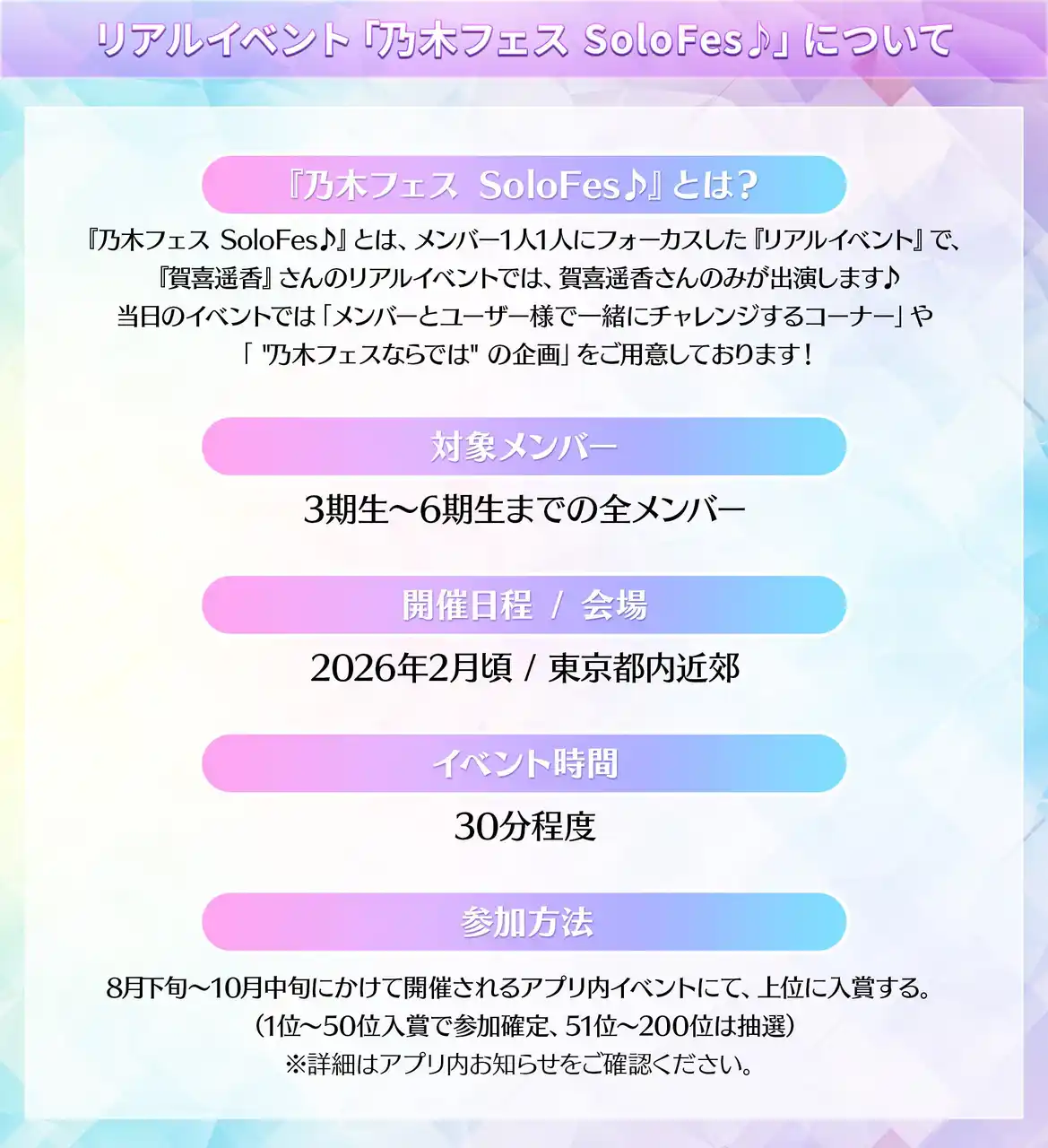 ◆リアルイベント「乃木フェス SoloFes♪」概要 |