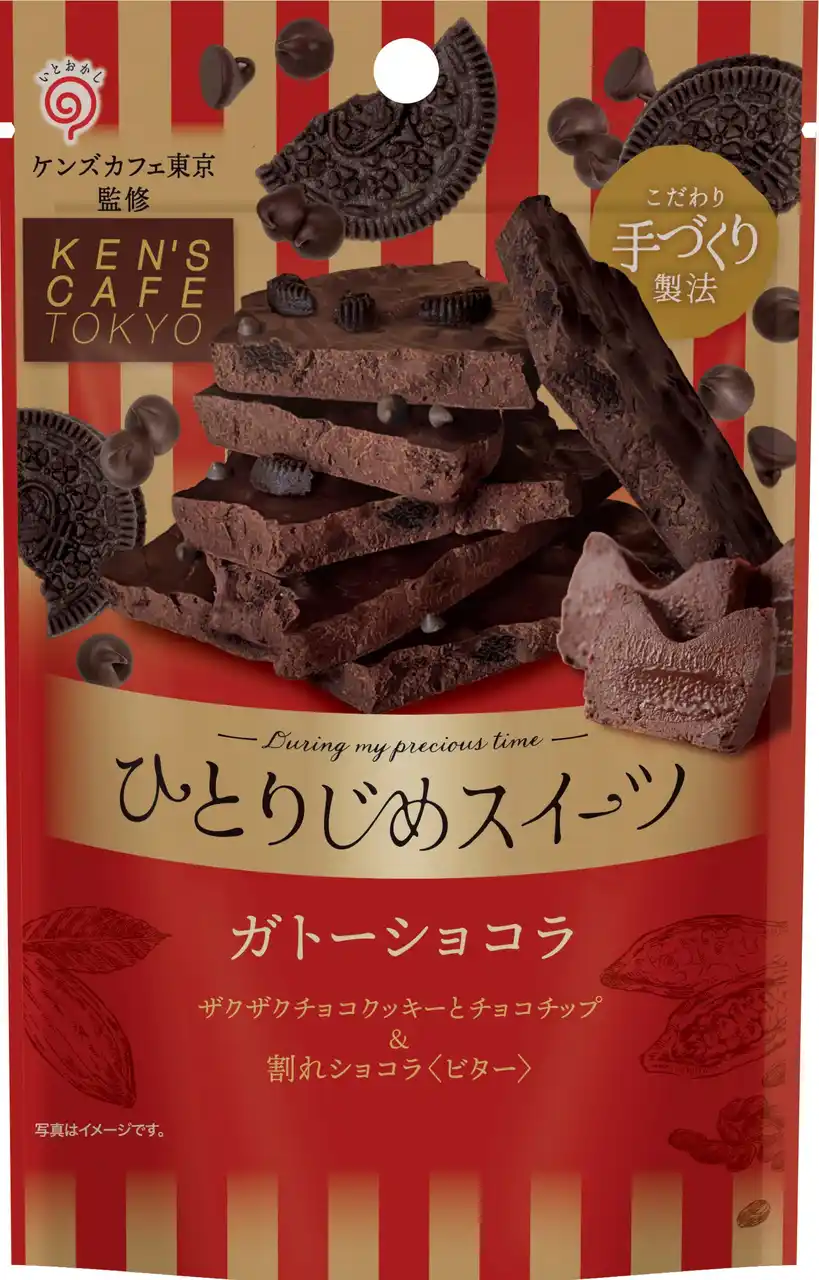 ガトーショコラ専門店「ケンズカフェ東京」オーナーシェフの氏家健治氏に監修いただき、試作を重ねてできた濃厚なガトーショコラの味わいをイメージしたチョコレートです。ビターなチョコレートにココアクッキーとチョコチップを混ぜ込み、チョコレートの濃厚な風味とクッキーのサクサクとした食感を感じられる割れチョコレートに仕上げました。 |