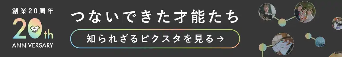 | ピクスタ株式会社(東京都渋谷区 代表取締役社長:古俣大介、東証グロース:3416)は、2025年8月25日に創業20周年を迎えました。 | ||||||||||||