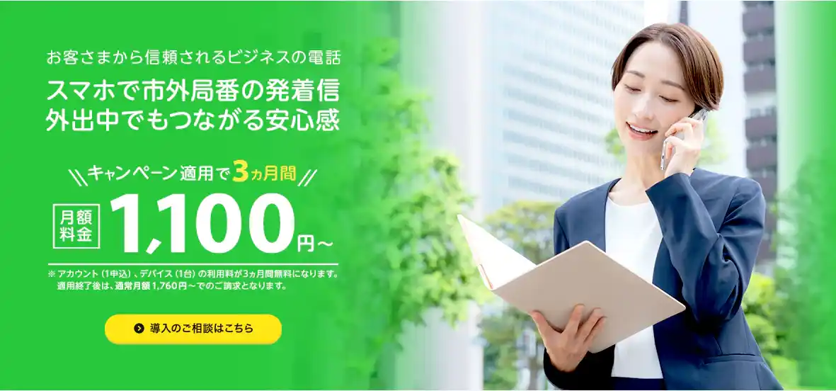 | スマホでの市外局番の発着信や外出先での電話対応、コスト削減、業務の可視化まで実現。 | |||
