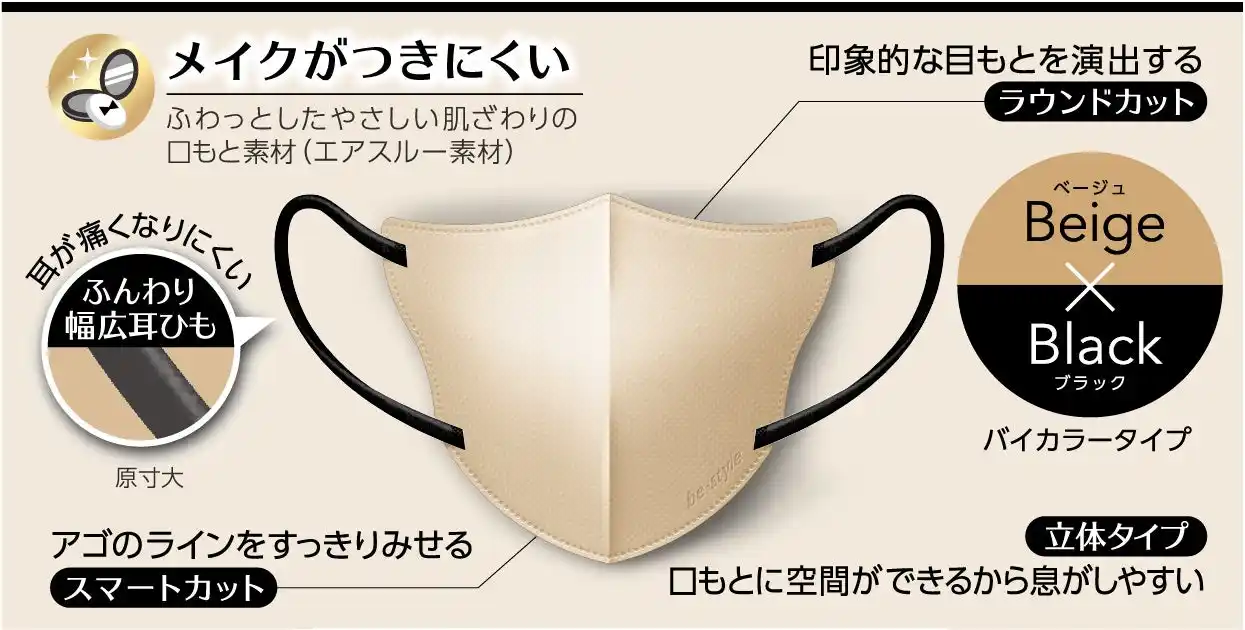 すっきり美しい輪郭に。小顔に魅せるマスクに新色登場!『ビースタイル 立体タイプ ふつうサイズ ベージュ×ブラック』新発売