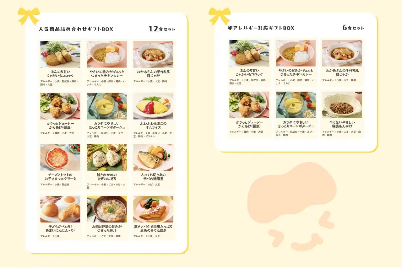 出産祝いやお誕生日といった特別なお祝いのシーンはもちろん、日々子育てを頑張るご家族への気遣いのギフトとしても最適です。可愛いラッピングやメッセージカードもご用意し、贈る方も贈られる方も笑顔になれる、“やさしさ”と“おいしさ”をお届けします。 |