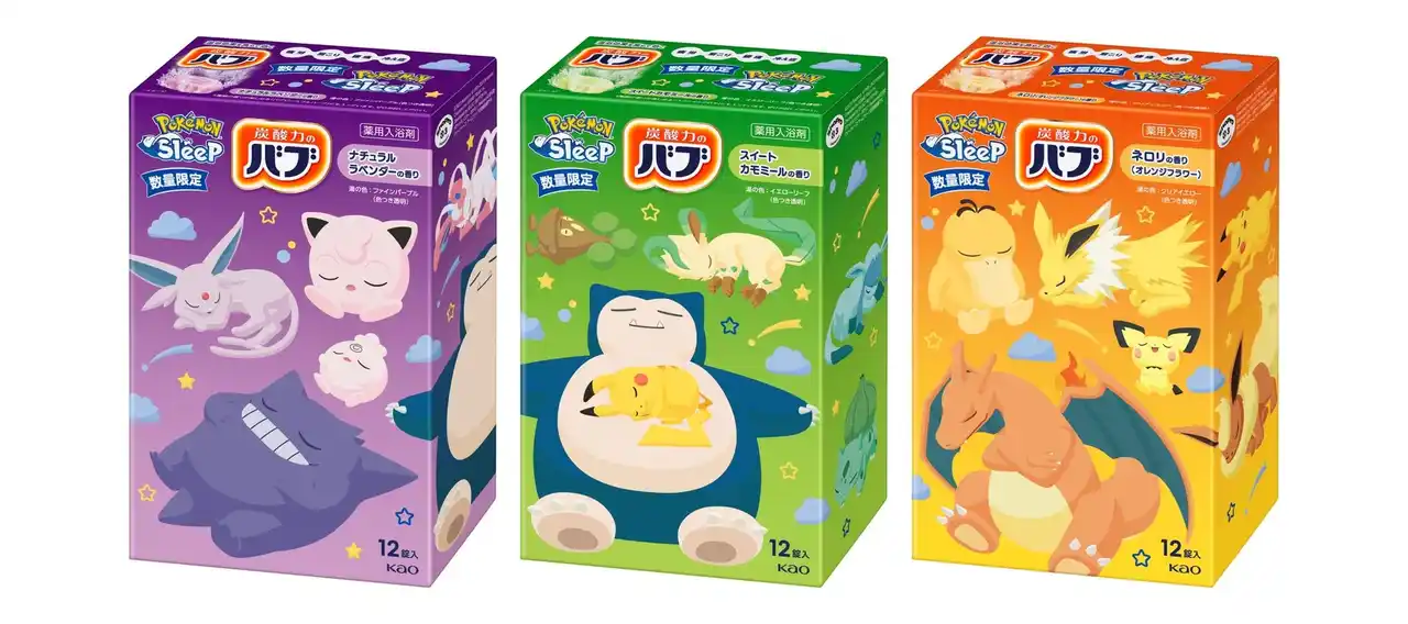花王株式会社のヘルスケアブランド「バブ」は、2025年8月30日に『Pokemon Sleep(ポケモンスリープ)』デザインの「バブ」3種(ナチュラルラベンダーの香り、スイートカモミールの香り、ネロリ[オレンジフラワー]の香り)を数量限定で発売します。 |