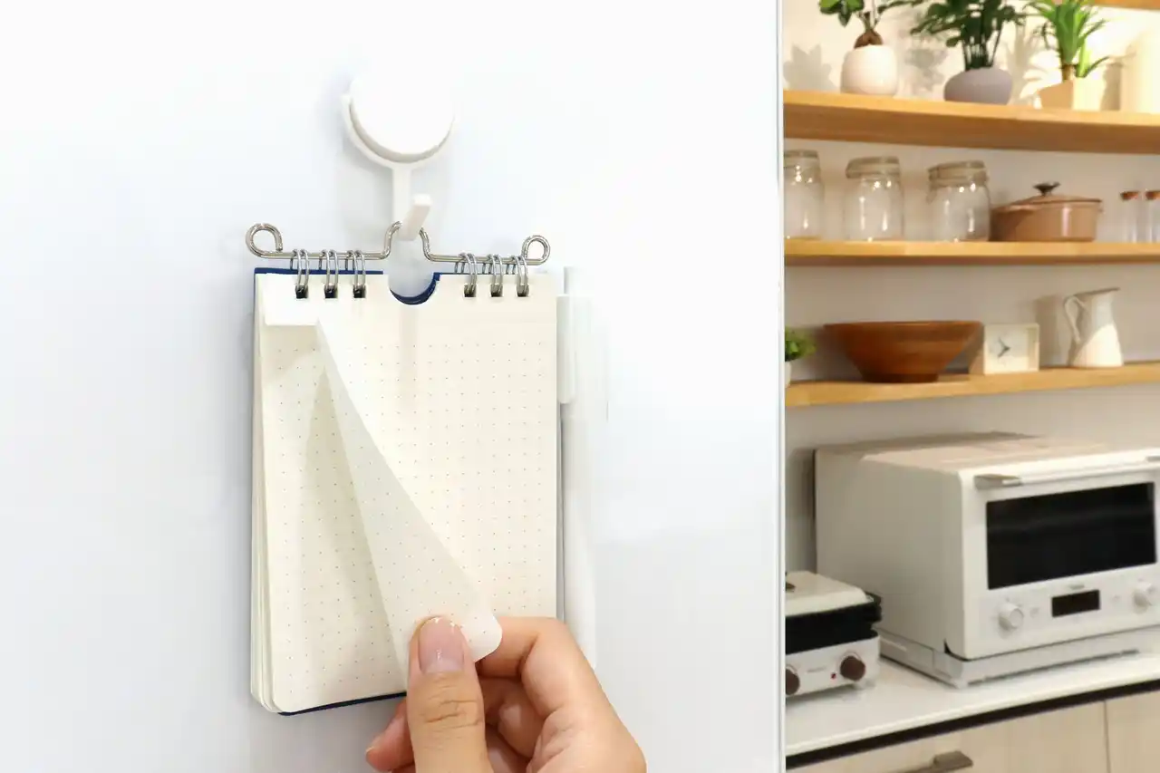 | 吊り下げることで視界に入りやすく、メモした内容を忘れにくくする工夫を込めたメモ帳です。 | ||||||||||||