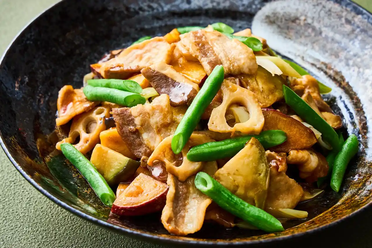 中国料理からは、「新潟県産野菜と豚バラの炒め」をご用意いたします。旬のれんこんやさつま芋、茄子、いんげんなどの野菜をたっぷりと使って、醤油ベースの甘辛い味付けはお子様も食べやすい逸品です。淡色で辛口、さっぱりとした味わいが特長で、旨味と香りが豊かな信州味噌と練りごまをベースにした担々麺がディナー限定で登場いたします。野沢菜のシャキシャキとした食感と、胡麻の風味、そして味噌のコクが合わさった味わい深い逸品をご賞味ください。 |