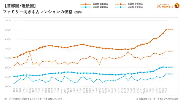 ・首都圏の掲載価格は過去最高となる5,000万円台に突入。1年で1,000万円以上アップ |