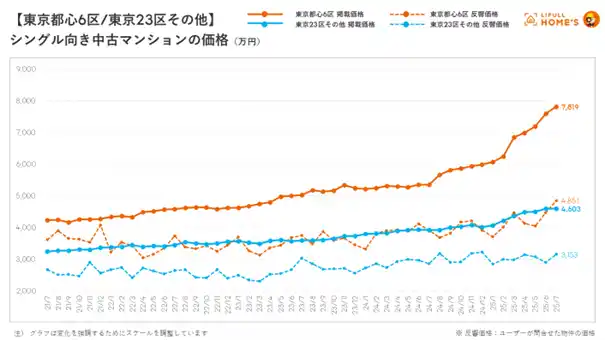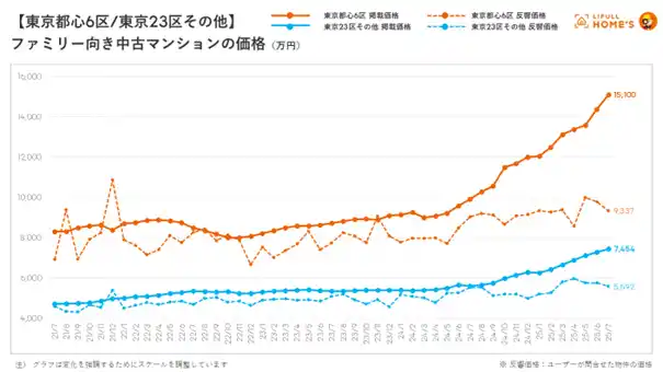 ・東京都心6区の掲載価格は過去最高となる1億5,000万円台に突入。1年で5,000万円以上アップ |