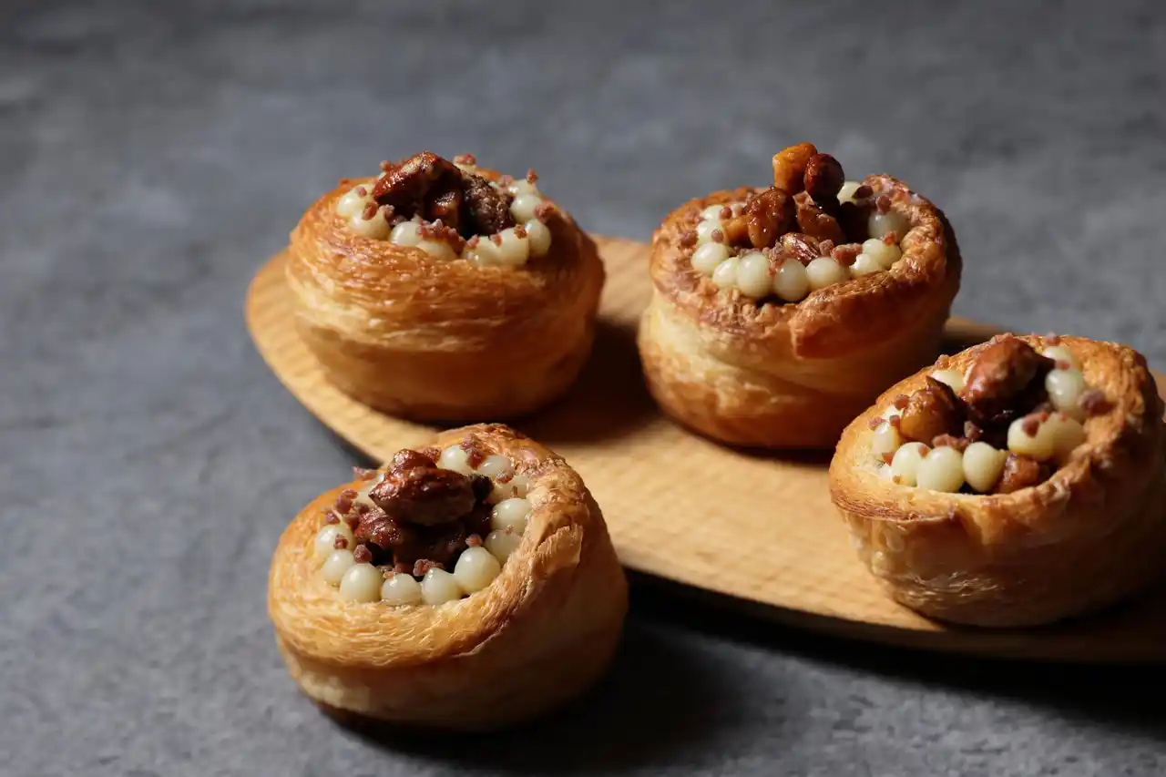 | この秋は、和栗や黒蜜、小豆を組み合わせた「ガトーマロンジャポネ」や、ベルギーの伝統菓子を秋らしくマロン風味にアレンジした「ミゼラブル」、グリオットチェリーの甘酸っぱさと濃厚なチョコレートムースが重なる「フォレノワール」など、秋の風を感じさせる贅沢なペストリーをご用意。ベーカリーでは、柿の甘みと生ハムの塩気が絶妙な「柿と生ハムのフォカッチャ」や、ザクザク食感を楽しめる「クロッカンマロン」、旬の舞茸をサンドした軽食にぴったりの「きのこ香るBLTサンド」など、実りの季節にふさわしいラインアップが揃います。 | |||||||||||||