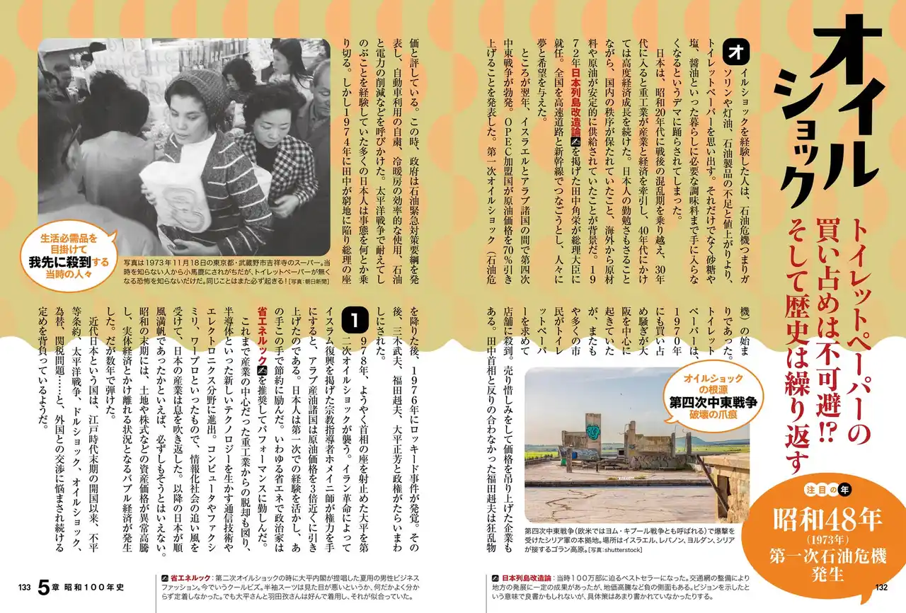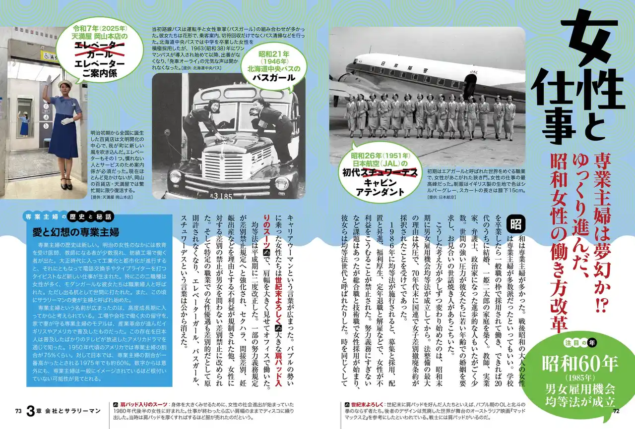 本書は見開き単位で昭和を象徴するキーワード・エピソードを取り上げ豊富な写真とイラストでご紹介。当時の世相を再現しています。 |