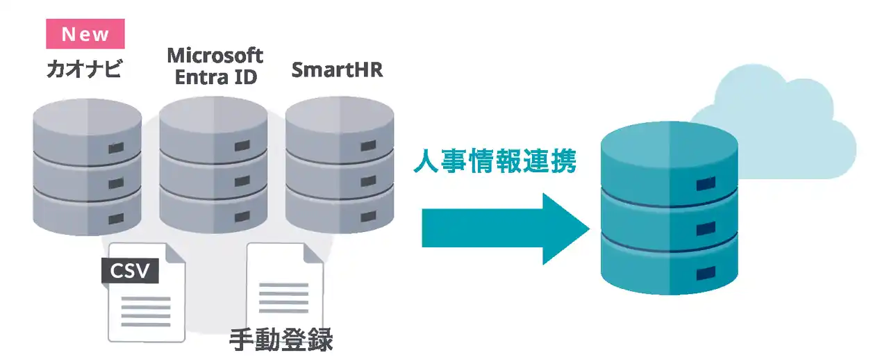 これまで対応していたMicrosoft Entra ID・SmartHRに加え、新たにカオナビとの連携に対応しました。 人事情報の自動反映により、組織変更や従業員情報の更新に伴うIT運用の効率化を支援します。 |