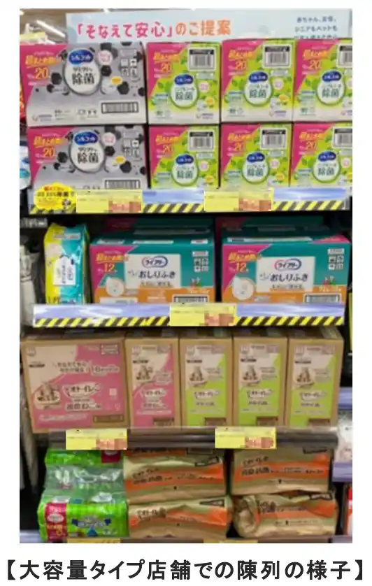 ユニ・チャーム株式会社(代表取締役 社長執行役員:高原 豪久)は、9月1日の「防災の日」にあわせて、災害時の備えとして活用できる9種類の商品を対象に、大容量タイプを発売します。また、日常の暮らしの中で無理なく備蓄する「ローリングストック」の実践を提案します。 |