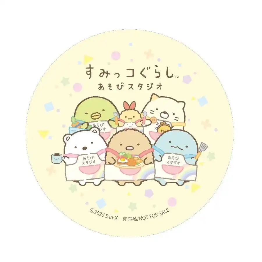 | 入場したお子さまに数量限定で、あそびスタジオ オリジナルアートの「オープン記念シール」をプレゼントします。お子さまが施設で着られるあそびスタジオオリジナルエプロンをすみっコたちも着たかわいいデザインです。数量限定ですので、早めの来場をお待ちしております。 | ||||||||||||||||||