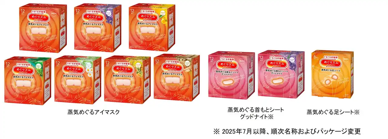 花王株式会社(社長・長谷部佳宏)は、グローバル・シャープトップ戦略に基づき、ヘルスケアの主力ブランド「めぐりズム」において、さらなるグローバルブランド化をめざしてリブランディングを実施します。その一環として、好評を博している「めぐりズム 蒸気でホットアイマスク」を改良した新商品「めぐりズム 蒸気めぐるアイマスク」を、2025年8月30日に発売します。 |